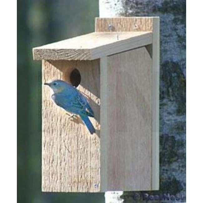 Closely monitor bluebirds and their roosting behaviors using the Looker Products View Thru Bluebird House. This innovative shelter not only offers a perfect home for bluebirds, it also enables you to check their nest regularly without disturbing them. The classic shape of the home creates an easily recognizable unit, and its thoughtful design has been approved by the North American Bluebird Society. The 1.5″ diameter entrance hole allows bluebirds to enter the unit, and a shelf directly beneath this entry on the interior of the box acts as a predator guard. The sloped roof overhangs this entrance, directing rain away from the nest, and gaps on the floor allow any captured water to drain. Ventilation gaps at the top corners of the home aid in regulating the internal temperature, while the western red cedar body creates a durable piece. Remove the top nail on the home to open the side panel, revealing the clear plastic panel which allows you to observe the bluebirds. This plastic piece separates you from the birds, while still enabling thorough nest checks throughout the season. Remove this piece of plastic at the end of the nesting season, to clean and maintain the item. Attach this home to a post, fence, or wall using screws (not included) and the predrilled holes on the back wall. Study bluebird nesting dynamics easily using this View Thru Bluebird House. Made in the USA.