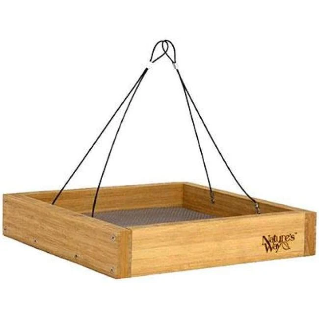 Create an avian retreat in your yard by adding this Nature’s Way Bamboo Tray Bird Feeder to it. This classic, rectangular unit provides dining area for a bevy of birds, thanks to its open design and perforated metal base. Environmentally friendly bamboo slats form the hardy frame, with two attached cables helping hang the piece evenly. This reservoir holds 2.5 quarts of seed, mealworms, fruit, or suet with ease, and perforations throughout this section provide drainage. The screen also removes for thorough cleaning, and the hardy base supports keep it nicely in place when hanging. The robust bamboo frame is naturally resistant to insects, bacteria, and squirrel damage, and the plant is quick to regrow and simple to harvest for a truly sustainable material. Add a lasting and generous feeder to your yard using this Bamboo Tray Bird Feeder. Ten year warranty.